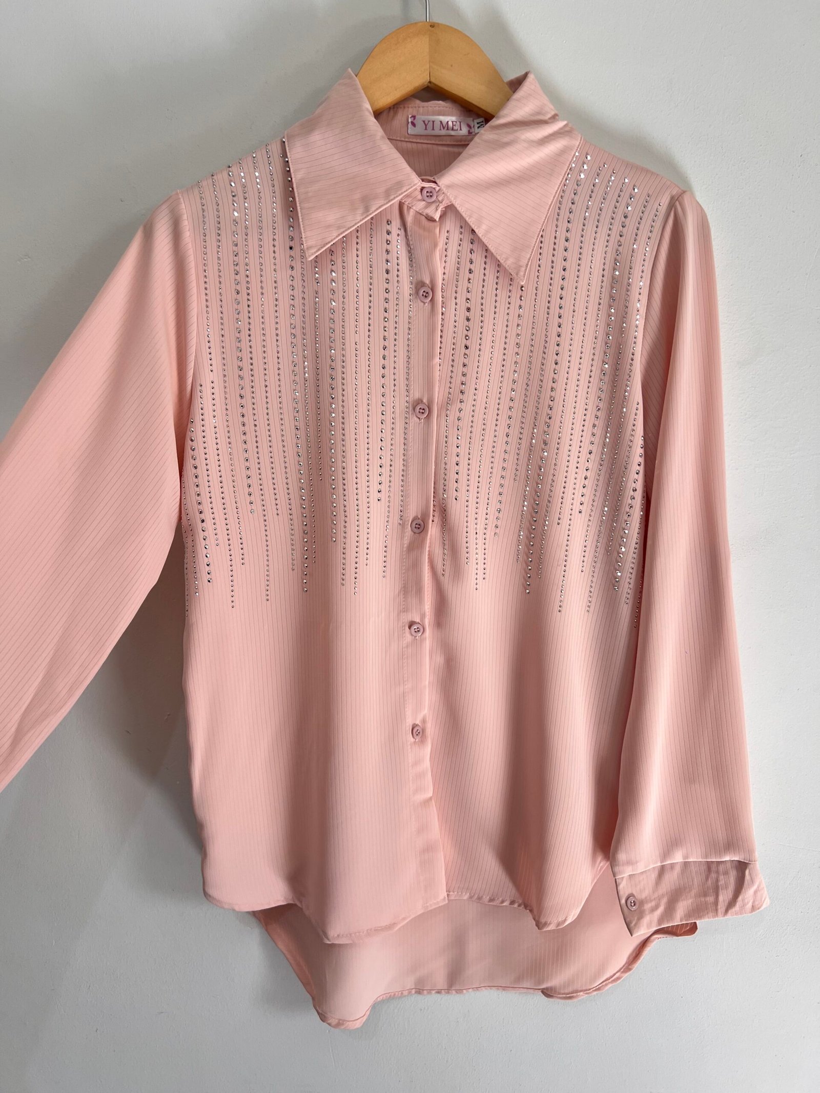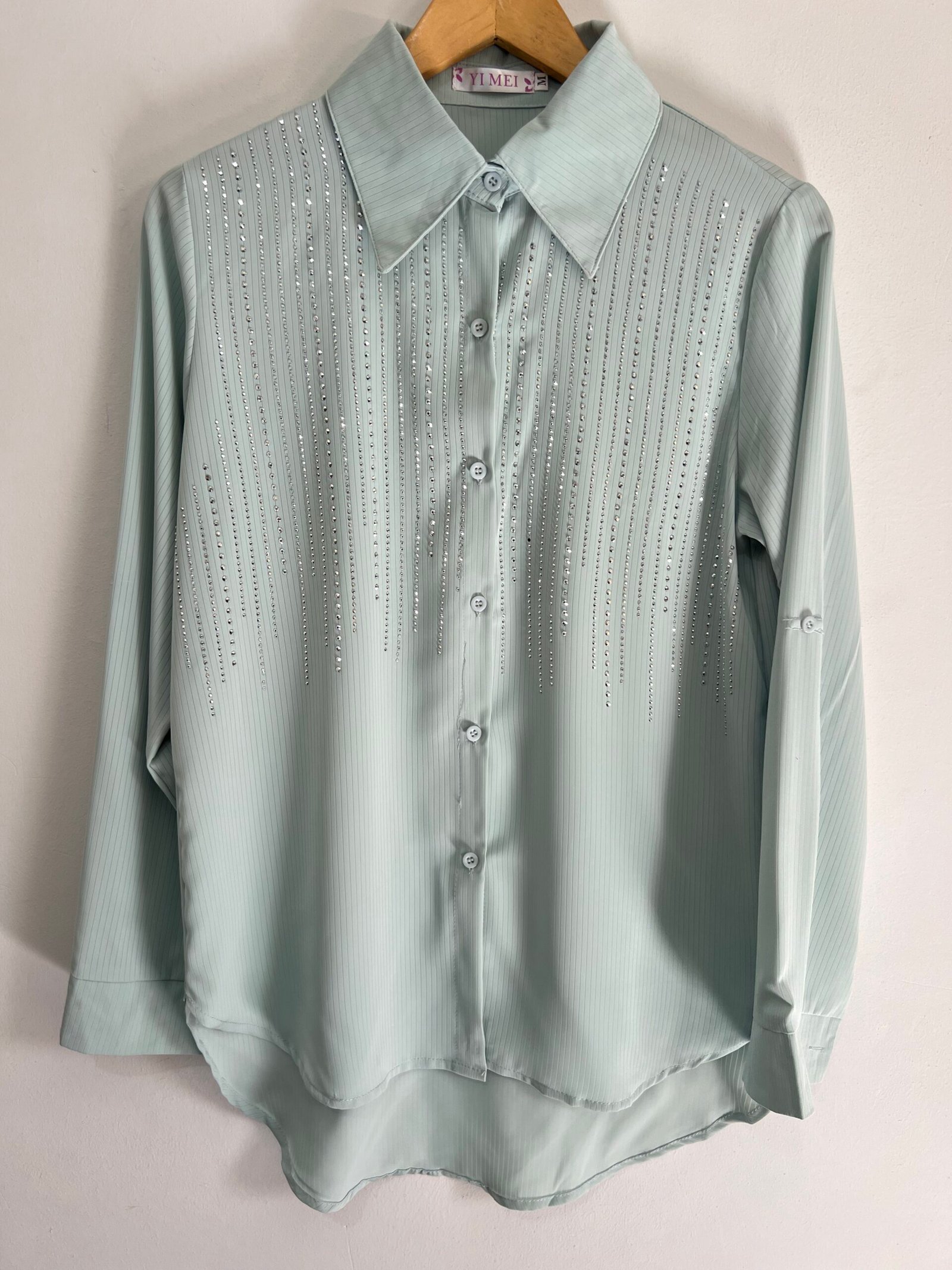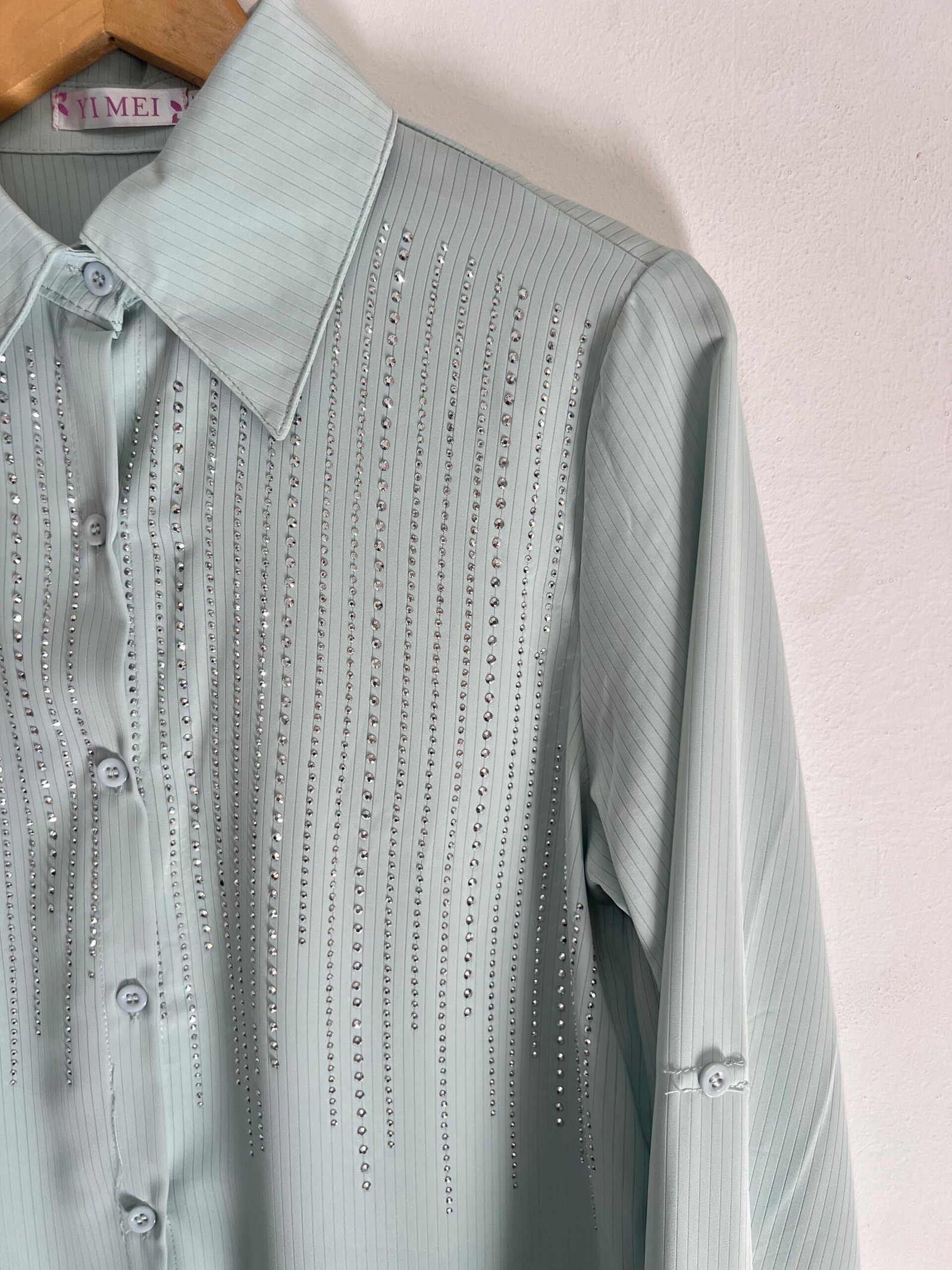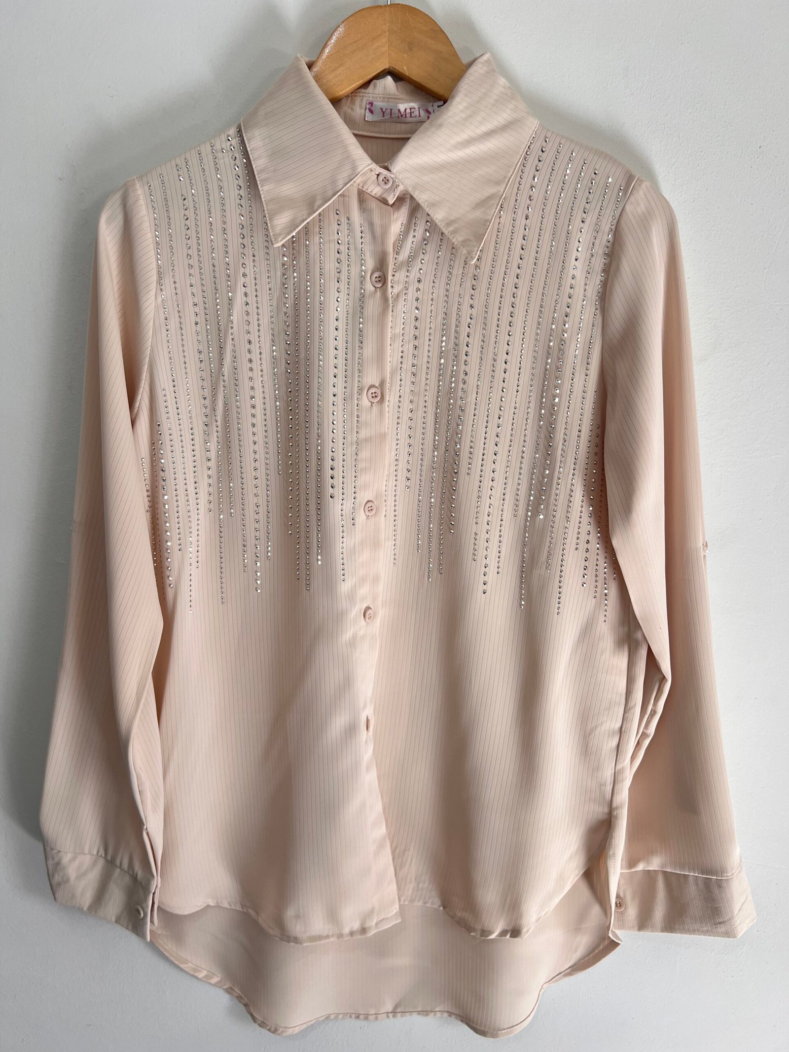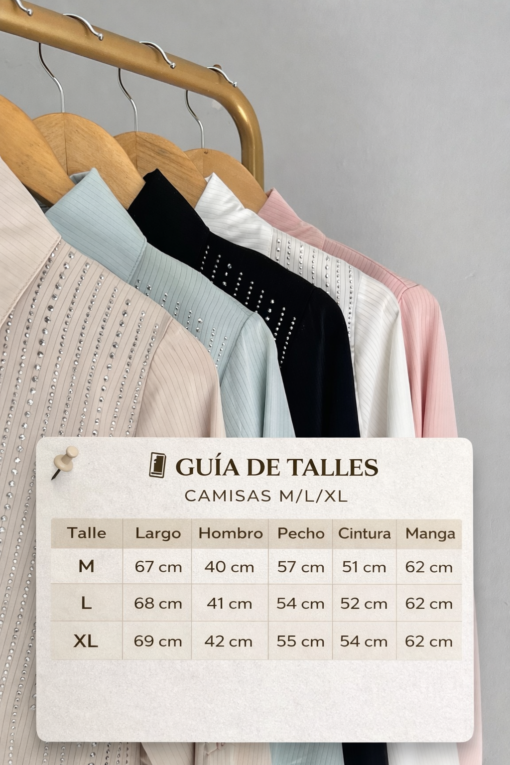 Camisa con detalles de strass en caída que le dan ese toque chic y diferente. Súper versátil, úsala de día o de noche y vas a destacar. Talle M, L y XL. 🤩