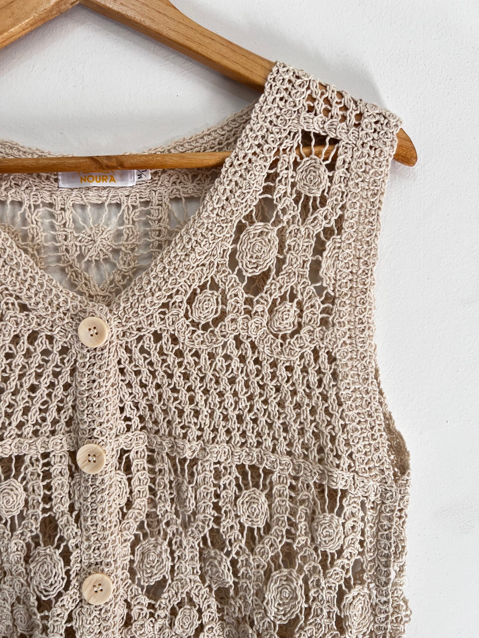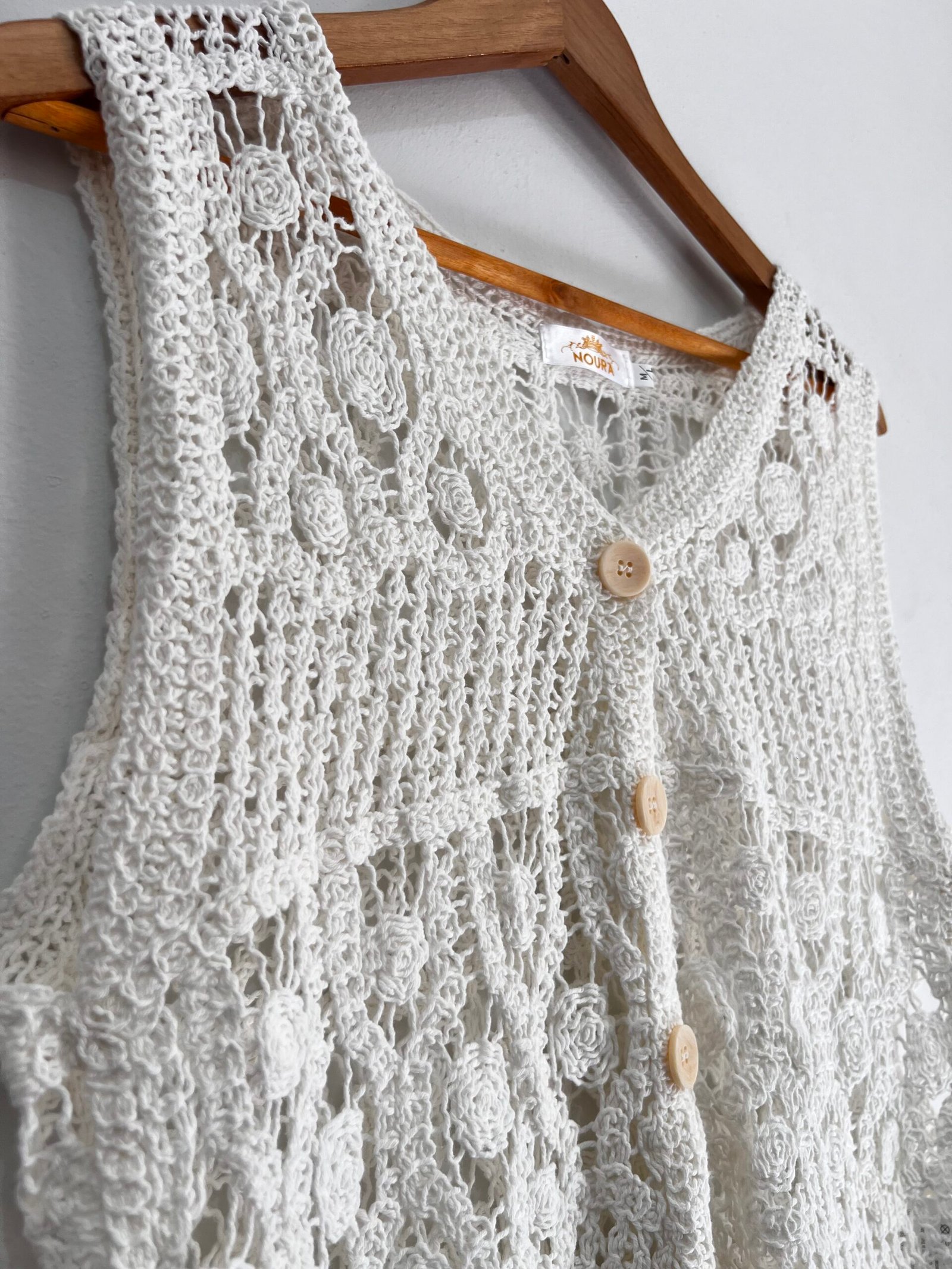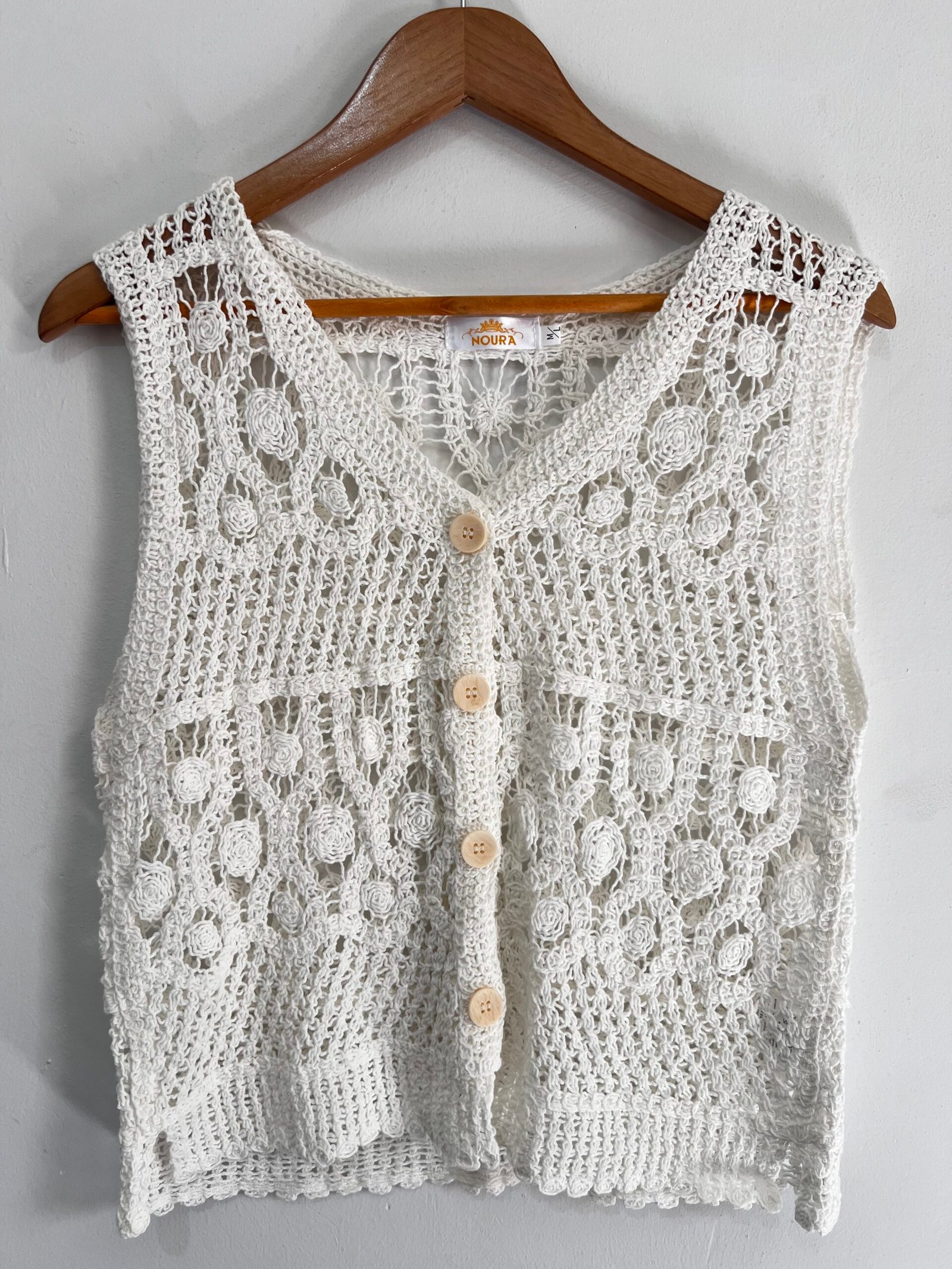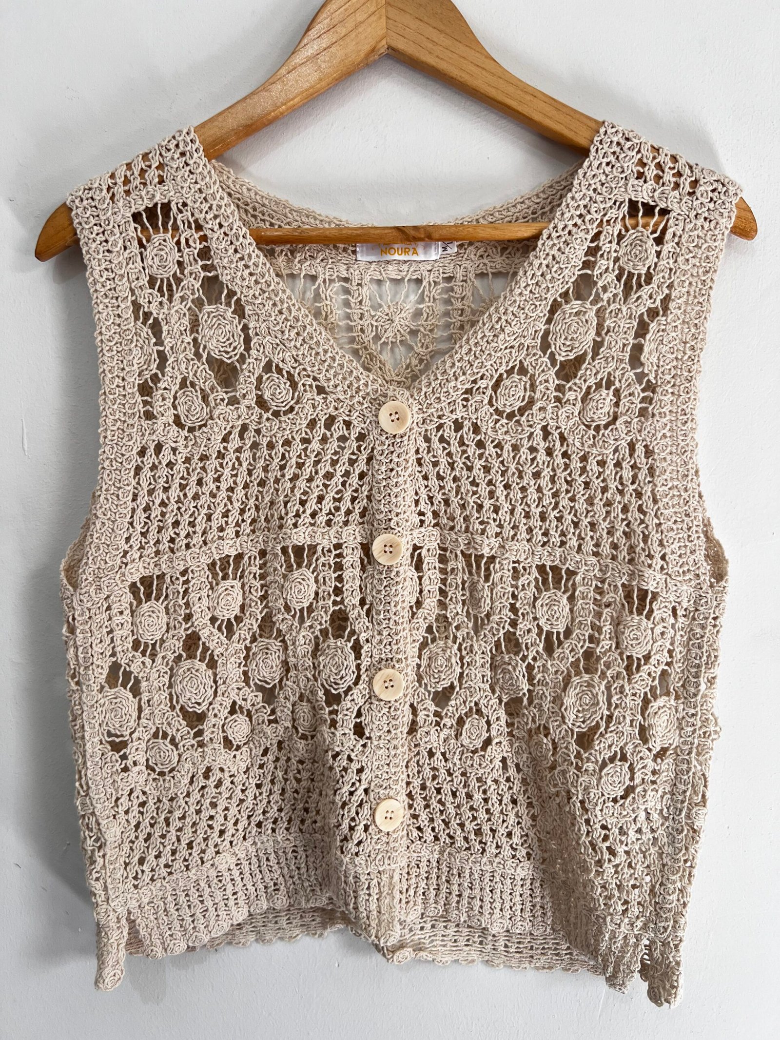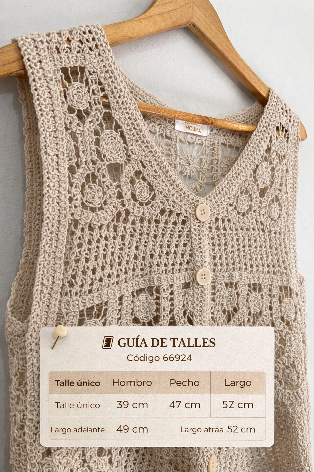 Chaleco tejido con botones. Perfecto para usar arriba de camisas, vestidos o tops.