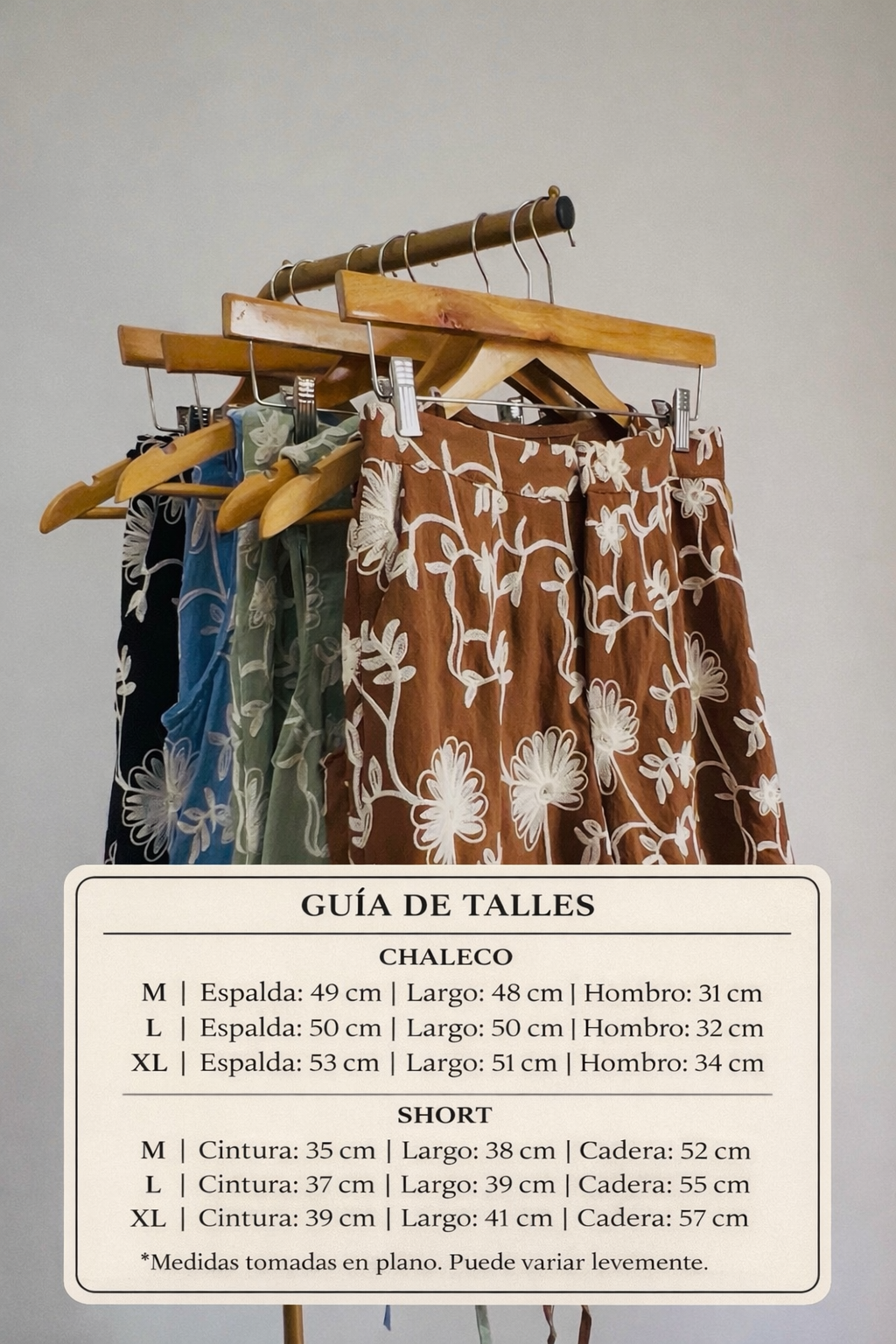 - Conjunto que no pasa desapercibido, tela liviana con bordado floreal que levanta todo el look. Ideal para usar junto o separado, fresco, canchero y super combinable.