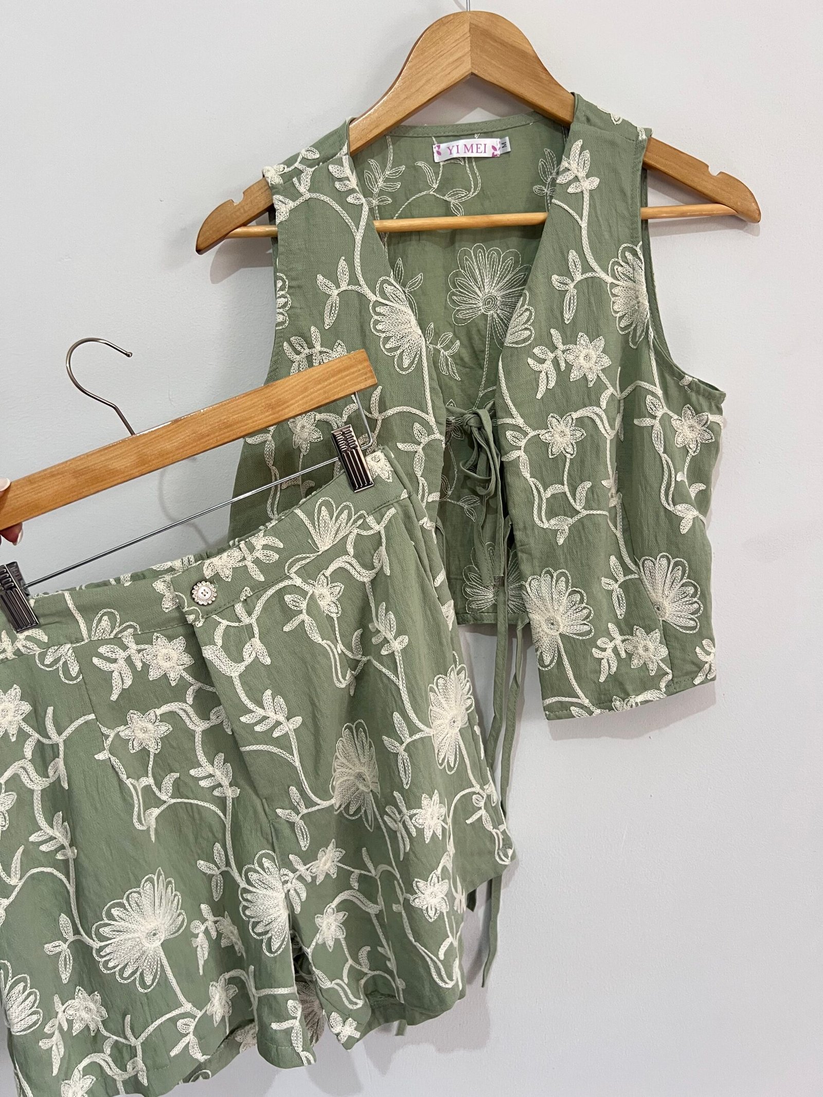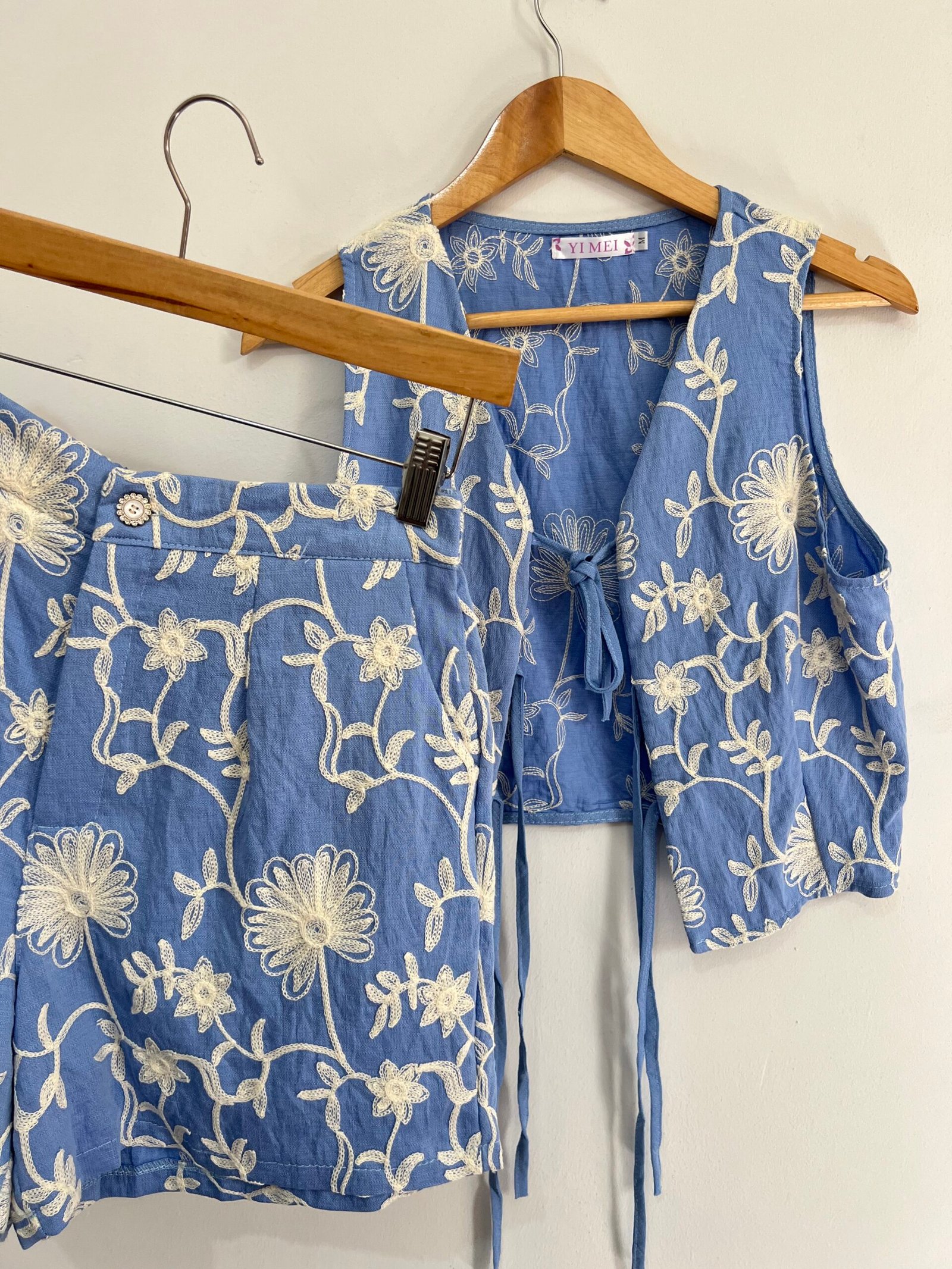 Conjunto que no pasa desapercibido, tela liviana con bordado floreal que levanta todo el look. Ideal para usar junto o separado, fresco, canchero y super combinable.