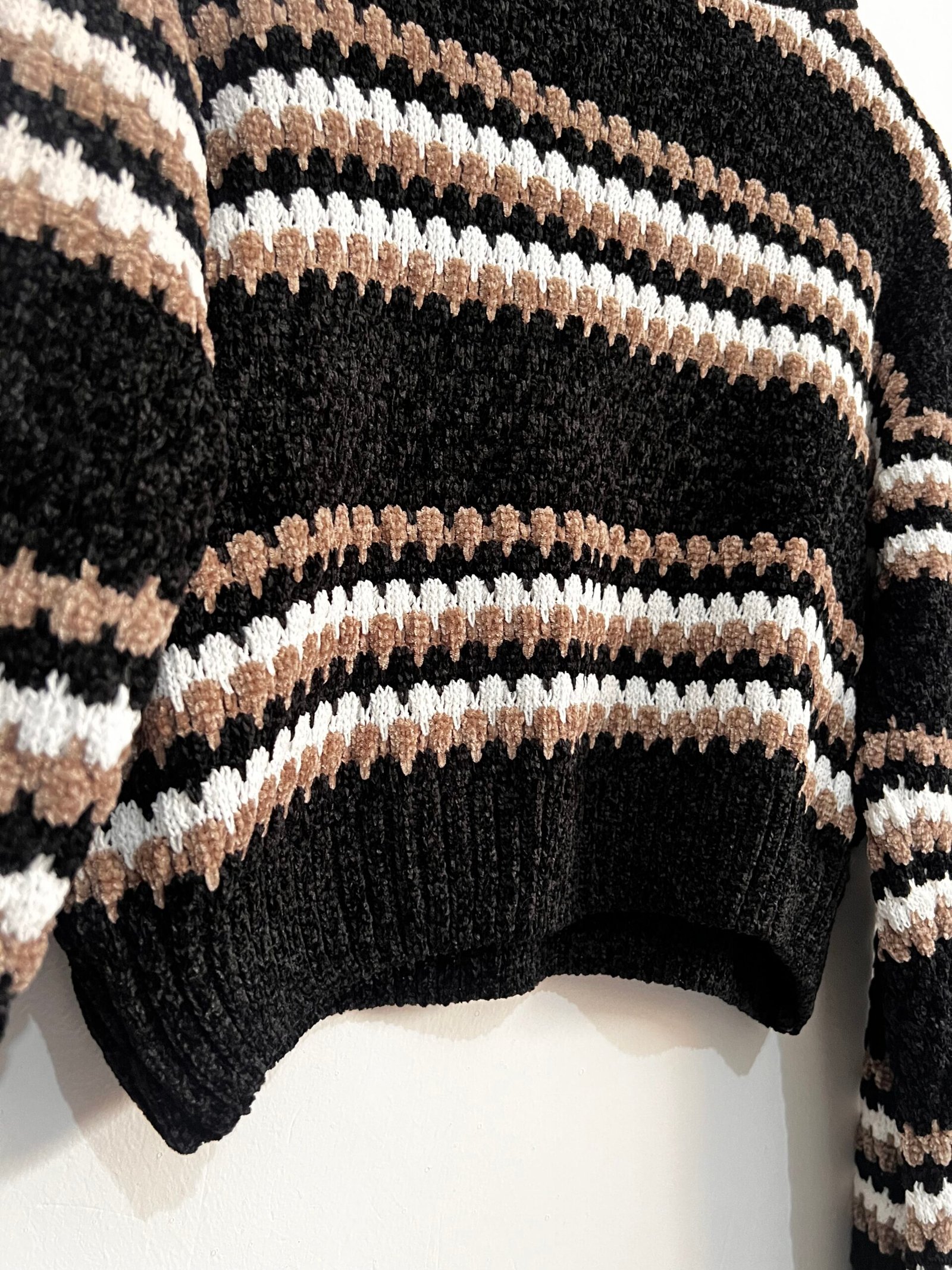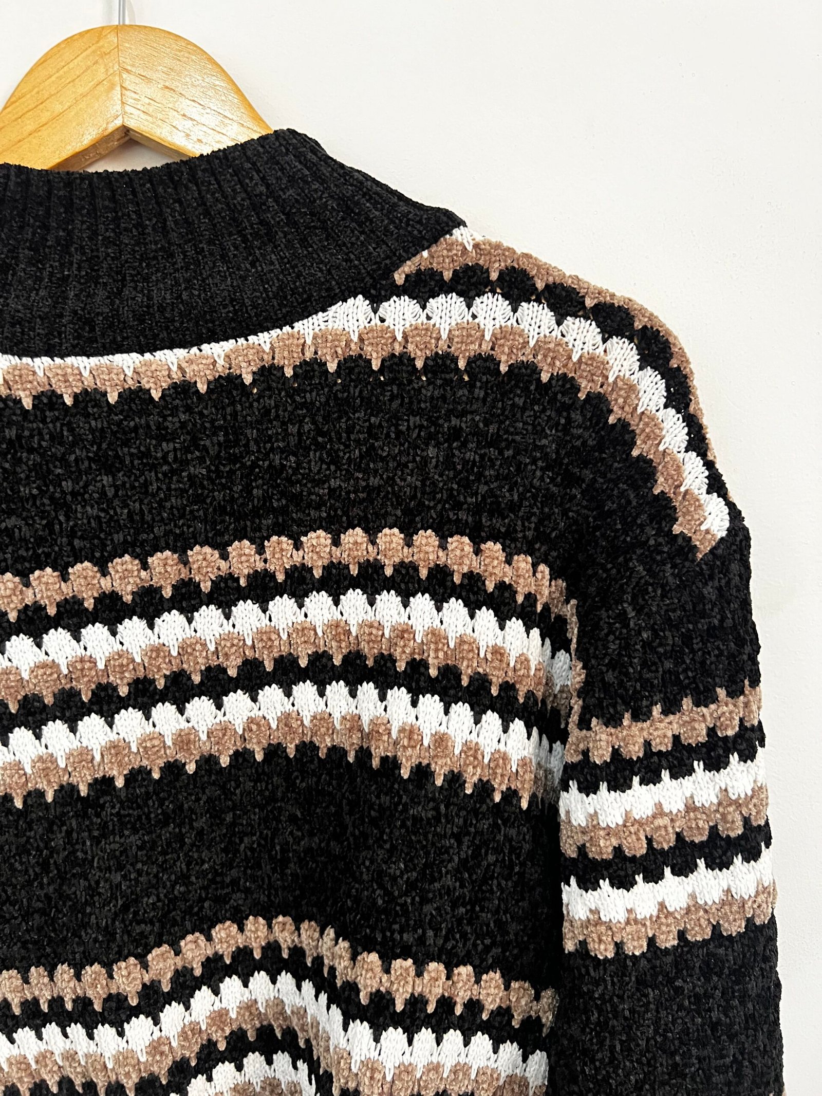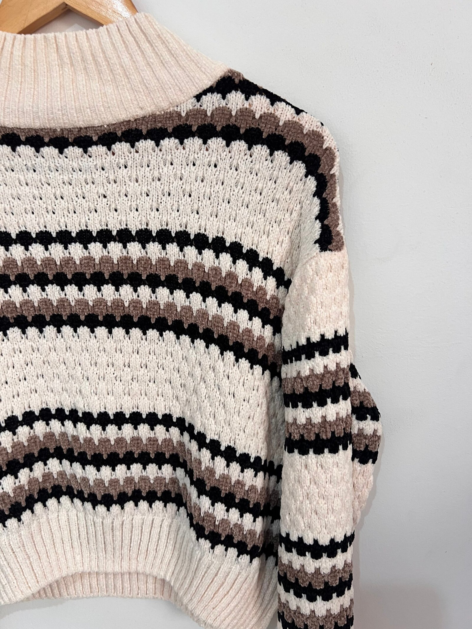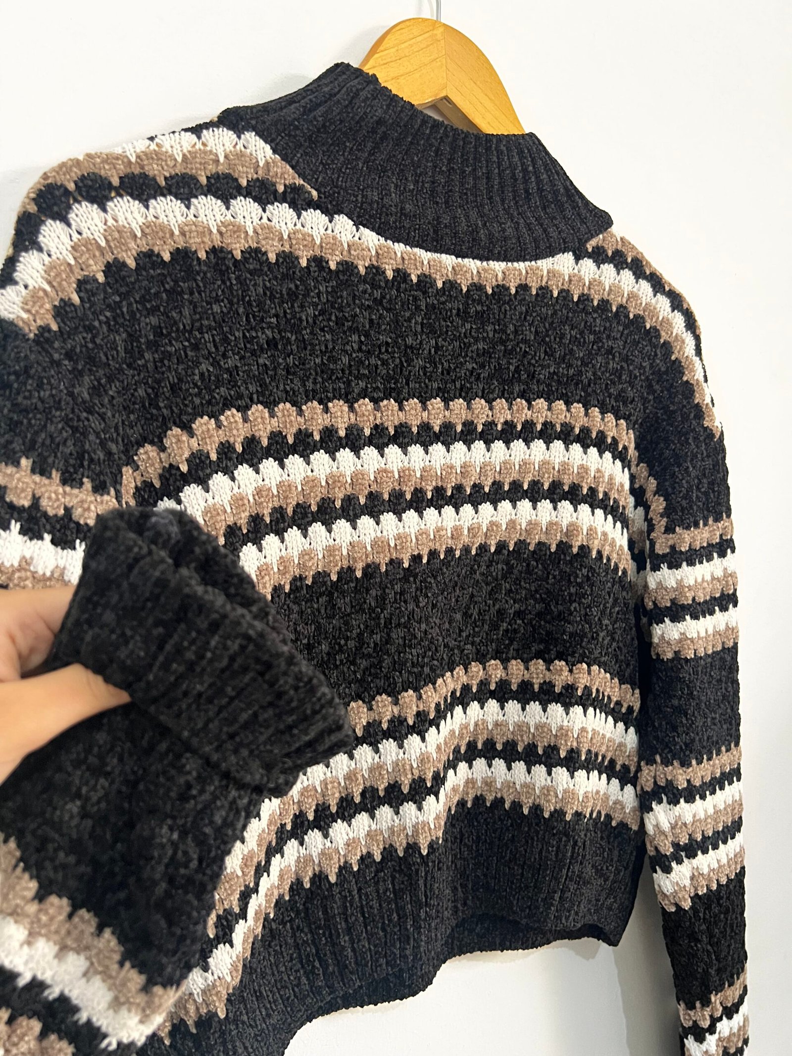 Sweater tejido a rayas 🤍🖤 con diseño canchero y actual ✨.