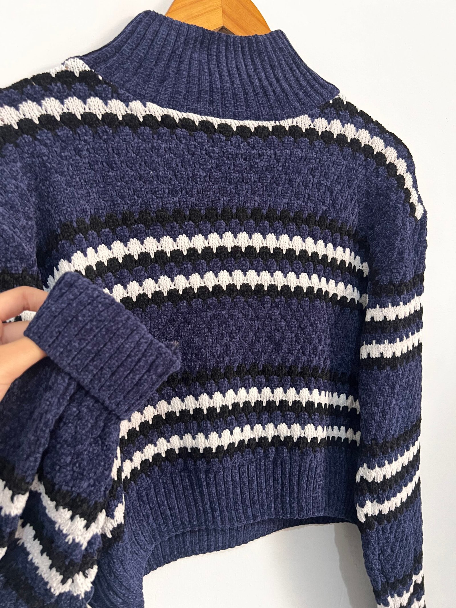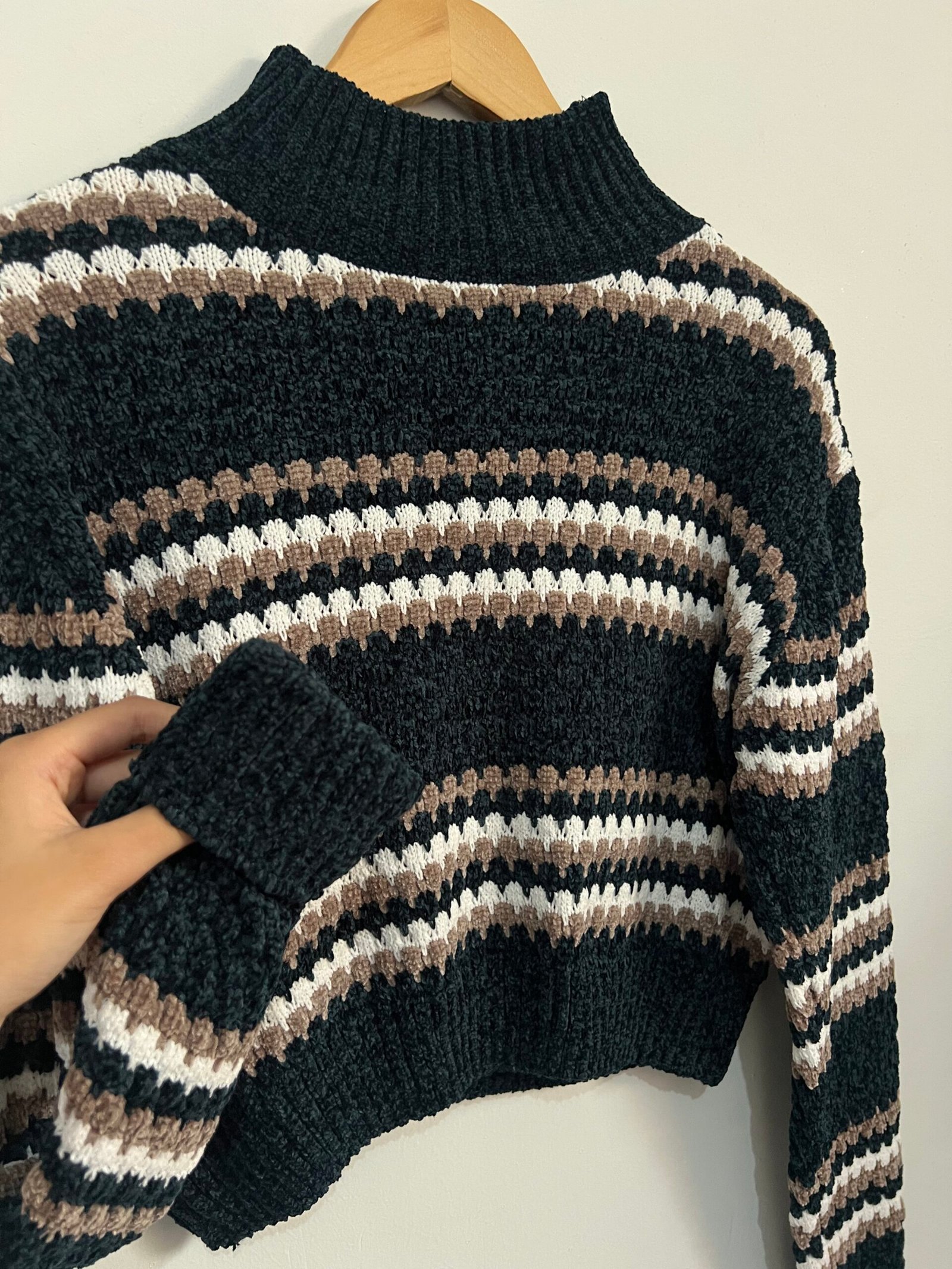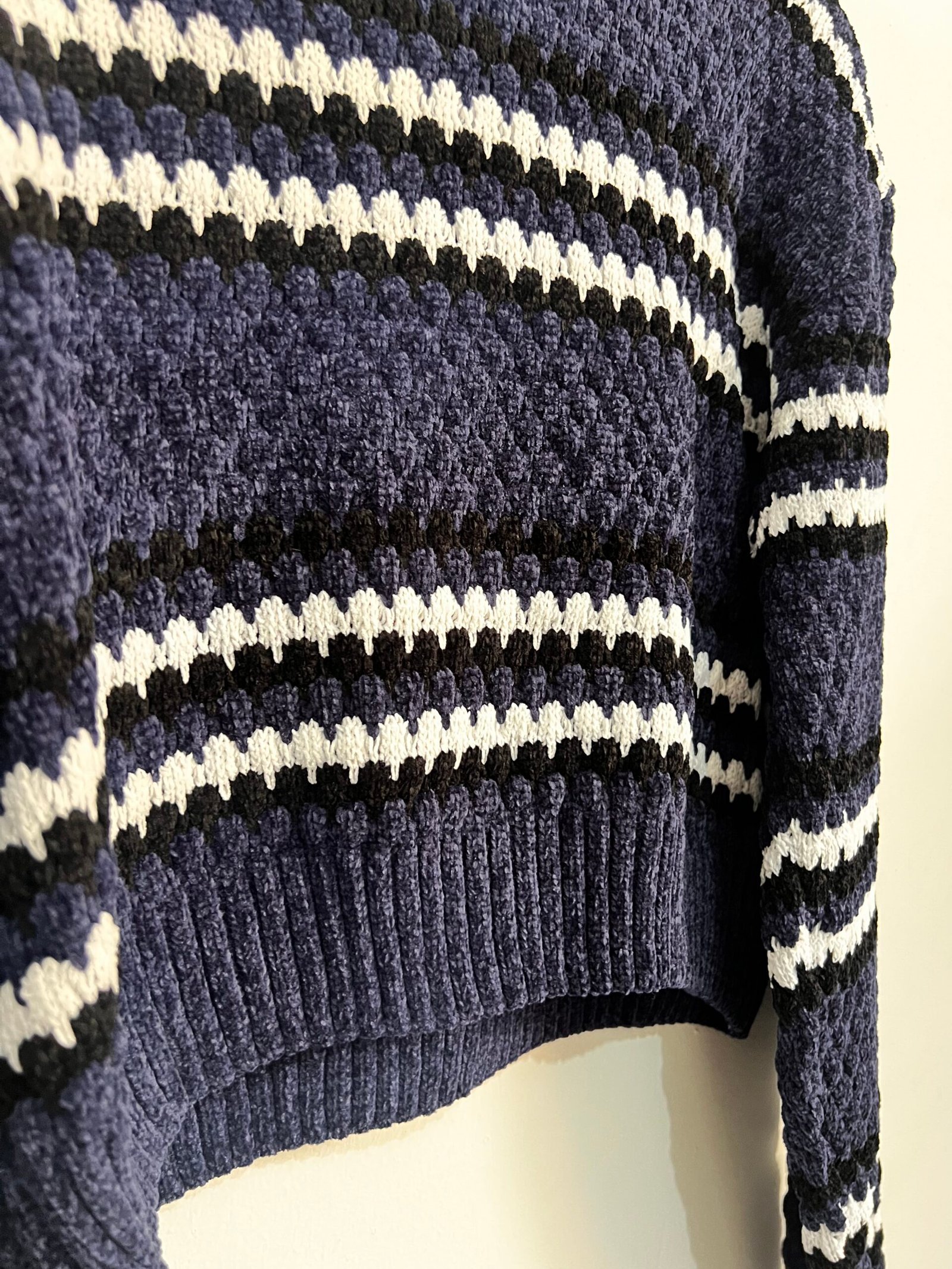 Sweater tejido a rayas 🤍🖤 con diseño canchero y actual ✨.