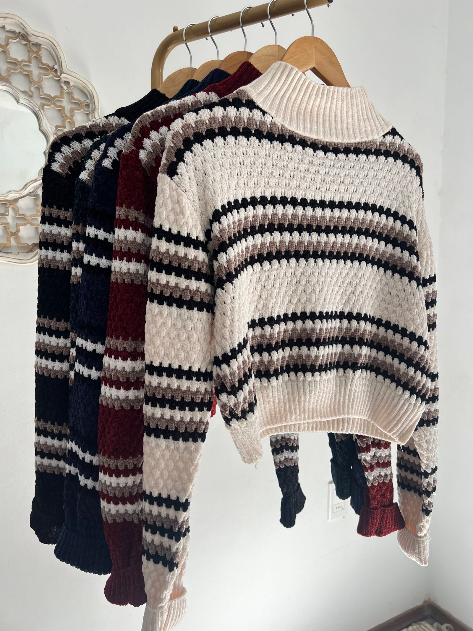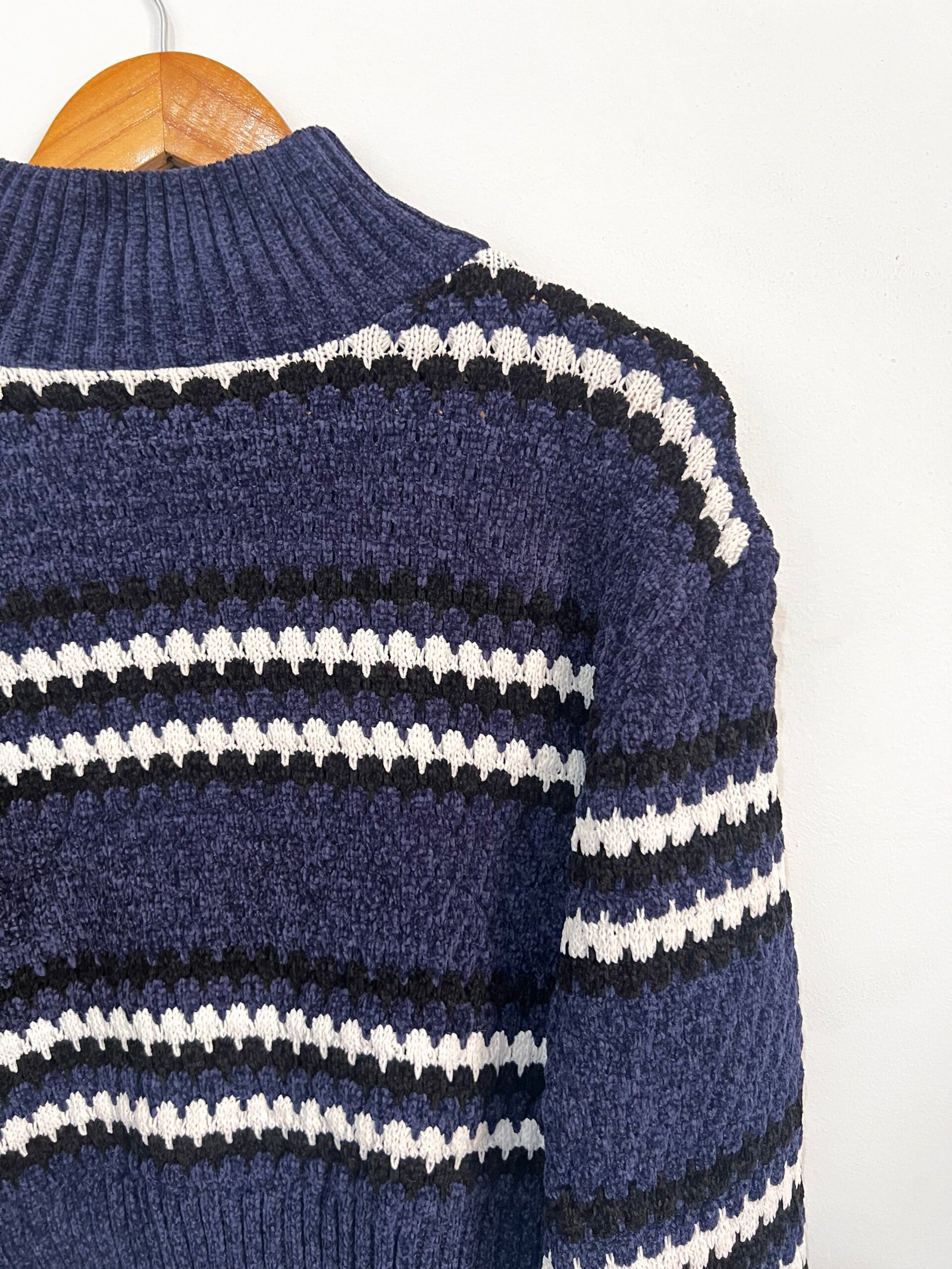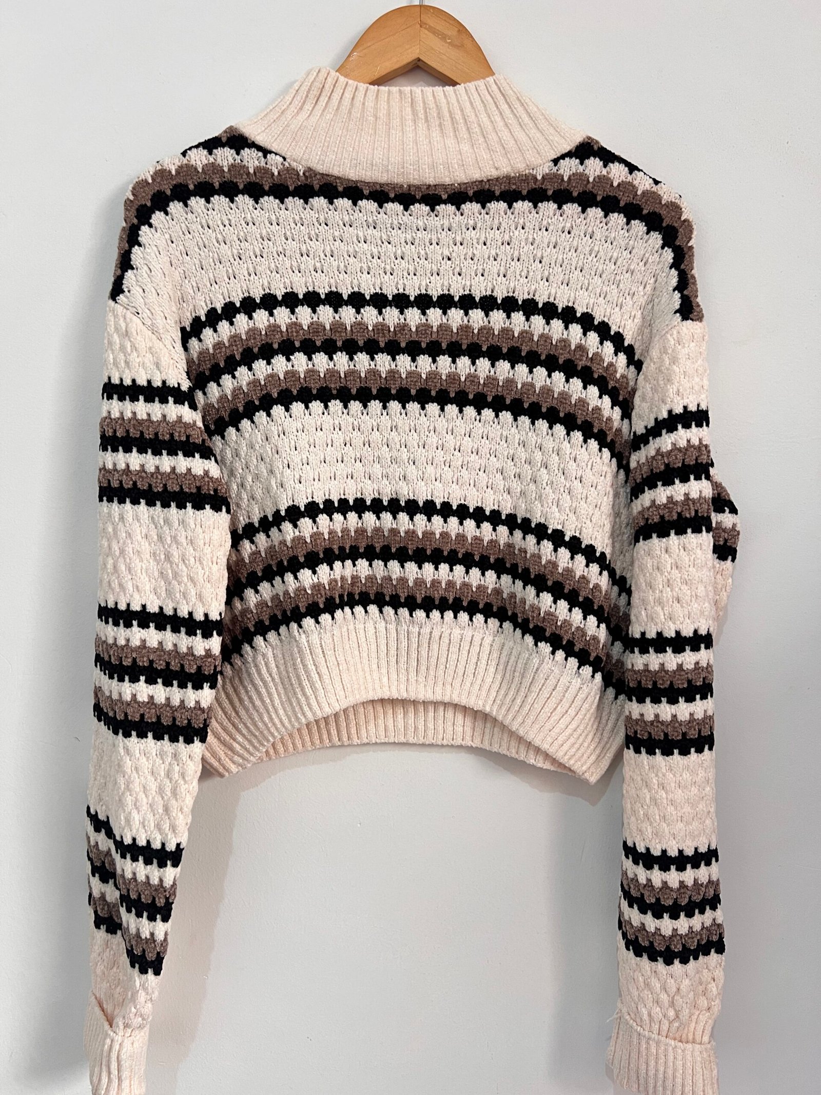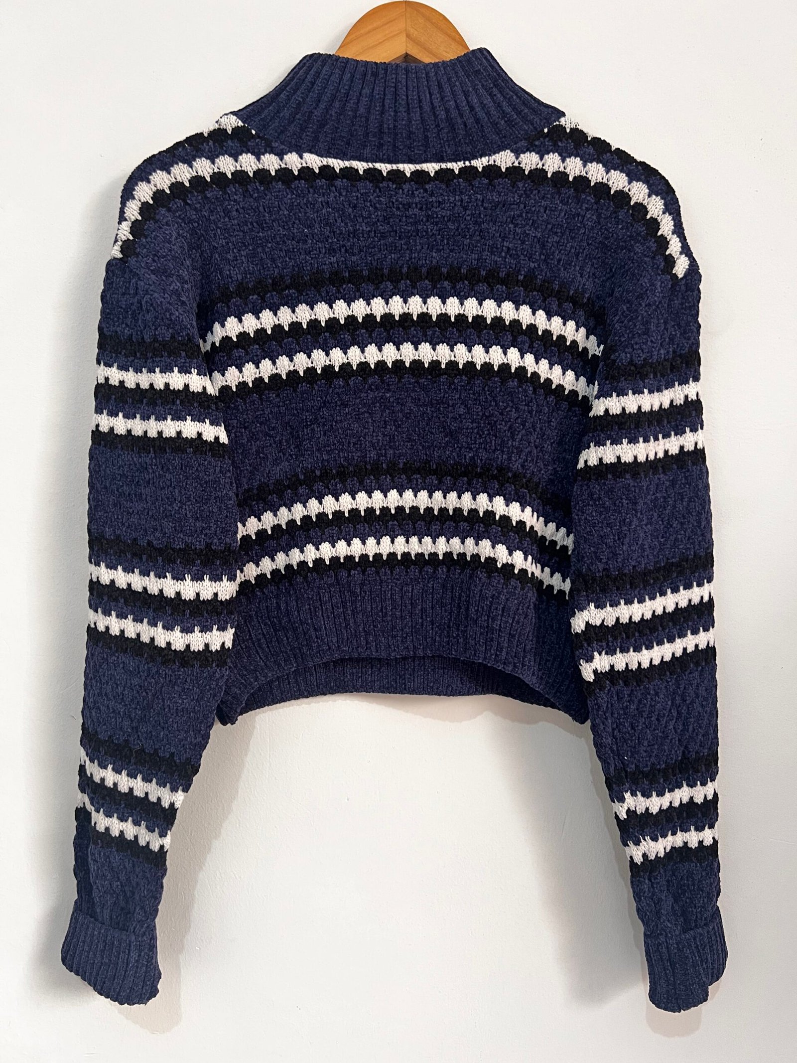 Sweater tejido a rayas 🤍🖤 con diseño canchero y actual ✨.